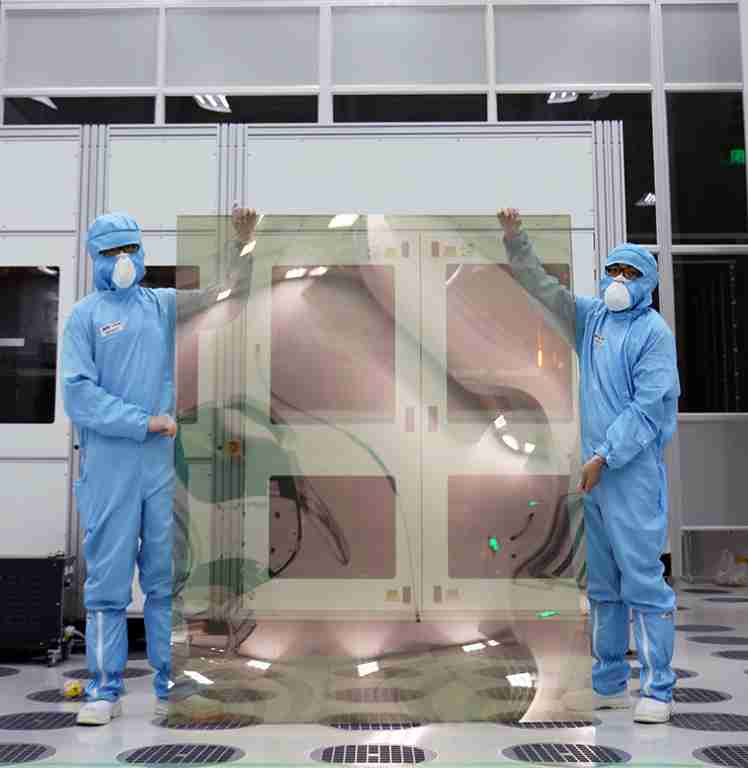 尊龙集团昆山厂第六代 LTPS (低温多晶硅) 生产的玻璃基板尺寸为 1500x1850 mm (毫米)